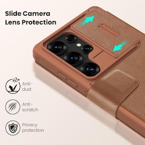 Capa de couro ultra para Nillkin Galaxy S25 com capa deslizante para câmera e porta-cartão Qualidade e características: 1. Design deslizante da lente da câmera. 2. Pode funcionar com carregador sem fio. 3. Capa carteira de couro com porta-cartão 4. Proteção total para o seu telefone, contra arranhões, batidas, sujeira, poeira, colisões e abrasão. 5. A capa Nillkin é feita de couro TPU de alta qualidade e material de policarbonato. Durável e prático. Incluído na embalagem: 1 * capa para Galaxy S25 Ultra (marrom). - Compatibilidade: projetada exclusivamente para o Samsung Galaxy S25 Ultra, esta capa oferece uma textura elegante e uma aderência confortável. A capa clássica de couro flip oferece proteção de 360° para o seu telefone - Design deslizante da capa da câmera – A capa deslizante protege a lente da câmera de impressões digitais, arranhões e ajuda a proteger sua privacidade. Você não precisa se preocupar em danificar ou arranhar suas lentes, mesmo sem uma película de proteção de lente - Prático suporte de cartão – possui 2 compartimentos para cartões de identificação, cartões de crédito ou dinheiro. A capa flip com um fecho magnético garante que ela permaneça fechada com segurança, enquanto fornece proteção de tela e cobertura total para o seu telefone - Proteção confiável – o revestimento externo de policarbonato rígido, moldura à prova de choque de TPU, design de airbag antiqueda, bordas elevadas da tela e protetor de câmera trabalham juntos para proteger seu telefone contra quedas e arranhões. O couro PU premium oferece uma sensação confortável e suave ao toque - Design fino e confortável – Esta capa ultrafina e compacta oferece excelente proteção sem adicionar volume. Suporta carregamento sem fio, para que você possa carregar seu telefone sem remover a capa. NOTA: Deixe o fecho magnético aberto ao usar o carregamento sem fio.