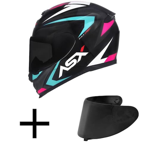 Capacete ASX Eagle Street Preto Tifany e Rosa Mais Viseira Fumê