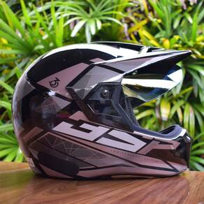 Versão enduro – capacete com a viseira e a pala. Street – capacete com a viseira e sem a pala. Cross – capacete sem a viseira e com a pala.