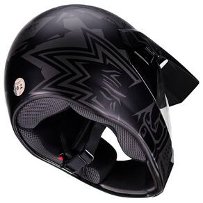 Especificações Gerais: * Entradas e saídas de ar * Tecnologia termoplástica de alta absorção (ABS) * Cinta jugular com engate micrométrico * Entradas e saídas de ar * Forração removível e lavável * Casco injetado em termoplástico de alta absorção (ABS) * Acabamento em verniz UV para pintura mais resistente * Viseira externa cristal (TRANSPARENTE) antirrisco e de troca rápida, em policarbonato de 2 mm * Grafismo em decal * Revestimento interno em tecido antialérgico, removível e lavável * Anel antifurto * Fecho micrométrico * Entrada de ar inferior para ventilação dentro do casco * Certificado pelo INMETRO