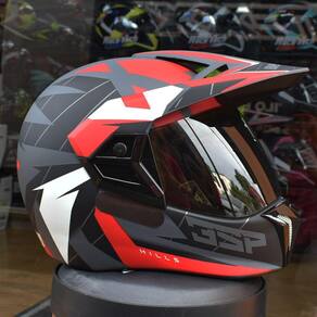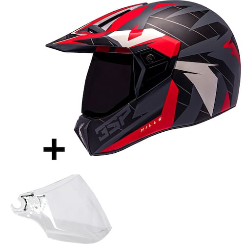 Versão enduro – capacete com a viseira e a pala. Street – capacete com a viseira e sem a pala. Cross – capacete sem a viseira e com a pala.