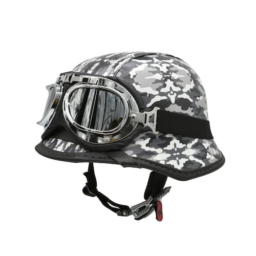 Desperte o estilo vintage com um toque de classe. Experimente a liberdade com nossos capacetes temáticos de alta performance, agora com acabamento em material sintético texturizado, que une elegância, durabilidade e autenticidade. O casco é fabricado com o mesmo material de alto impacto utilizado em capacetes de moto, oferecendo estrutura robusta com visual retrô inconfundível. O engate micrométrico com regulagem proporciona um encaixe seguro e confortável, enquanto os grafismos exclusivos da nossa marca ganham ainda mais destaque com o acabamento premium em material sintético. Por dentro, conforto garantido. O forro interno antialérgico, com espuma e pluma de poliamida, assegura uma experiência macia e aconchegante para todas as suas aventuras seja para exposições, sessões de fotos, fantasias ou coleção. Inspirado no modelo vintage alemão da Segunda Mundial, este capacete é uma peça única para apaixonados por história, estilo e autenticidade. Lembre-se, é importante respeitar as normas de segurança: este produto não é indicado para uso em veículos motorizados como motos, karts, entre outros. Especificações técnicas: Casco ABS alto impacto mesmo dos capacetes de moto . Engate micrométrico com regulagem. Forro interno antialérgico com espuma e pluma poliamida. Pintura automotiva de primeira geração. PP VESTE 53/54 cm P VESTE 55/56 cm M VESTE 57/58 cm G VESTE 59/60 cm GG VESTE 61/62 cm Ean: 7908643730779