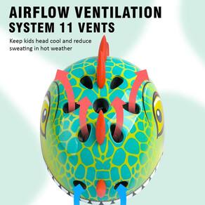 Adorable helmet for kids' safety The helmet is made of PC shell and EPS foam which provide high ability to resist impact and absorb shocking efficiently. 4 lovely animal design: dinosaur, shark, fox and bear. The helmet is not only adorable and eye-catching , but also provides sufficient safety for children. Size Suitable for 2 different head sizes. XS: 44-50cm / 17.3-19.6inch, S: 50-54 cm / 19.6-21.3 inch, M: 54-58 cm / 21.3-22.8 inch. Suggested user age. XS:1-3 year-old S: 2-7 year-old, M: 7-16 year-old (Recommended only). Please choose the suitable size according to the head circumference. Easy to adjust Chin strap length is adjustable. The buckle is fastened and released easily. Medium size helmet includes 2 sets of interchangeable pads with different thickness (7mm and 10mm) to fit kids’ head size. The pads are removable for cleaning, keep kids away from odor and dust. Package includes 1 x helmet - O capacete de bicicleta infantil é feito de uma capa de policarbonato resistente e espuma EPS de alta densidade, proporcionando absorção de choque. Com um design de dinossauro bonito e vívido, este capacete de bicicleta infantil certamente será um sucesso com seus pequenos. - Mostrador traseiro ajustável e tiras de queixo para ajuste personalizado. Ajuste sugerido para tamanho de cabeça PP: 44-50 cm / 17,3"-19,6". - 11 saídas de fluxo de ar, mantém seus filhos frescos e confortáveis. 2 conjuntos de enchimento interno removível e lavável com diferentes espessuras (7 mm, 10 mm) para ajuste personalizado. - Adequado para vários esportes, como ciclismo, scooter, ciclismo e outras atividades ao ar livre. É um bom presente para aniversário, Natal, Ação de Graças, Halloween. - Conformidade - Em conformidade com a norma de segurança da Comissão de Segurança de Produtos de Consumo dos EUA para capacetes de bicicleta para pessoas a partir de 1 ano (cobertura estendida da cabeça)
