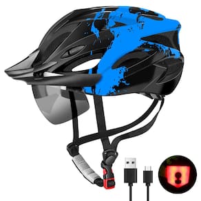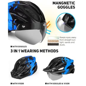 -?ÓCULOS E VISEIRA DE CAPACETE MAGNÉTICO?Este capacete de bicicleta com viseira e óculos de proteção é adequado para mountain bike e ciclismo de estrada. Você pode colocar os óculos e a viseira juntos, não só para proteger os olhos da luz solar, mas também para proteger seu rosto contra a areia e o vento.