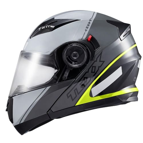 Um dos grandes diferenciais do Texx Gladiator V3 Makan é sua estrutura modular, que proporciona versatilidade na hora de pilotar. Com o sistema Double Vision, o capacete oferece viseira interna solar de 1,5 mm com proteção UVA e UVB, ativada de forma prática por meio de um botão lateral no casco. Essa funcionalidade permite adaptar a visibilidade de acordo com a luminosidade do ambiente, sem precisar trocar de viseira.