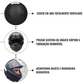 - Sistema de troca rápida de viseira sem o auxílio de ferramentas.