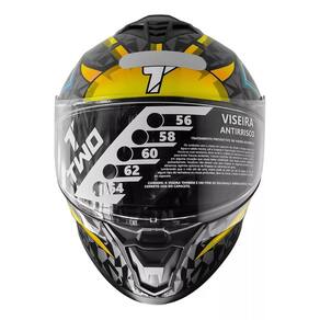 Capacete com viseira antirisco espessura 2mm. Fecho de engate rápido. Controlador de entrada de ar. Forro bochecha removível, lavavel e anti alérgico fixado por botões. Composto de plástico injetado ABS Policarbonato.