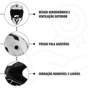 Ele possui entradas de ar frontais e queixeira ventilada, que mantêm a temperatura ideal mesmo em condições extremas.