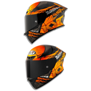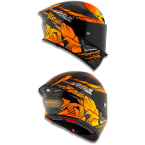 Seu casco é fabricado em termoplástico avançado ADT, um composto de resinas de alta resistência a colisões, oferecendo um ajuste perfeito. O sistema de ventilação foi otimizado para uma circulação de ar eficiente, com entradas de ar na frente e extratores de ar no spoiler traseiro, garantindo o resfriamento e o conforto durante a pilotagem.