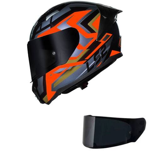 Capacete LS2 FF810 Vigo Spinn Preto Prata e Vermelho Mais Viseira Fumê