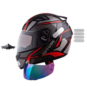 - 1 Capacete EBF New Spark Spider Preto Vermelho - 1 Narigueira Big Super Alta Universal - 1 Viseira Camaleão Polivisor - 1 Adesivo Polivisor Branco