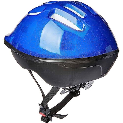 Capacete infantil com 10 entradas de ar, sistema de trava com botão, regulagem de circunferência, cascos externos em pp, intenos em eps alta com densidade de 60g/cm³, espuma interna.