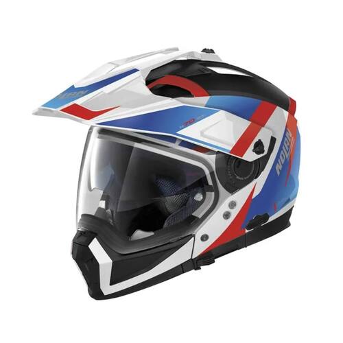 Capacete Nolan N70-2x Skyfall N-com Branco Vermelho Azul 60 100% Italiano, N70-2 X é o modelo mais versátil da marca italiana Nolan. Essa versatilidade é exibida nas oito configurações possíveis utilizando a queixeira, viseira e pala removíveis. Este capacete irá surpreender você que pilota tanto no asfalto, quanto na terra. Vale lembrar que esse Nolan foi o primeiro capacete de moto do mercado equipado com a proteção de queixo removível, permitindo ser um capacete aberto e fechado, ou seja, dois em um. Assim, você pode andar com um estilo off-road completo ou um estilo de pilotagem mais suave. O N70-2 possui uma viseira ultra-larga que proporciona um campo de visão mais amplo. •Protetor de Queixo Removível •Acompanha Pinlock •Campo de visão amplo Características: Calota do capacete: A calota do Nolan N70-2 X foi desenvolvida para atender aqueles que não dispensam proteção, porém investem em estilo e perfeição. A composição é de Policarbonato LEXAN, um polímero de alta qualidade quando se trata de eficiência de impacto. É importante destacar que o Policarbonato LEXAN é mais eficaz e rígido do que o ABS utilizado em algumas marcas de capacete. Este modelo possui dois tamanhos de calota, o S (55-56) e M (57-58), e o L (59-60) e XL (61-62), porém o tamanho do EPS (isopor que absorve o impacto) altera de acordo com cada tamanho elevando a segurança do casco. Sistema de segurança: O Nolan N70-2 X é equipado com um sistema de segurança Microlock 2 (engate rápido), o qual possui dupla alavanca e ajuste micrométrico. Esse sistema é produzido com material termoplástico para a alavanca de abertura ergonômica e alumínio para a alavanca dentada e vedante. Uma alavanca só abre após a outra ser liberada, isso reduz a possibilidade de abertura involuntária. Esse produto é homologado para ser utilizado tanto com a queixeira, quanto sem a queixeira. Ou seja, ele foi aprovado para ser um capacete integral e aberto. Viseira: Uma das principais características desse modelo é o amplo campo de visão da viseira. Essa viseira possibilita uma visão maior na parte frontal e lateral, garantindo assim o máximo conforto e segurança na pilotagem. A viseira também é resistente a arranhões, dispõe de sete estágios de aberto e possui pinos para a instalação do Pinlock (incluso), película ante embaçante. Este modelo de capacete idealizado pelo grupo italiano, possui um sistema de ajuste na viseira que permite ajustar com exatidão o Pinlock. Esse sistema atua do lado externo da viseira, não havendo a necessidade de desmontá-la para a instalação do Pinlock. Visor solar: Visor solar impresso em Policarbonato LEXAN e proteção contra raios ultravioletas de até 400 nanômetros. Além disso, o visor possui tratamento S/R, resistente a arranhões, e F/R, resistente a neblina e manchas. Este visor pode ser facilmente desmontado para casos em que não haja necessidade do uso do mesmo, ou que seja preciso a lavagem do acessório. O acionamento do óculos solar é realizado através do lado esquerdo e para voltar na posição autêntico basta apertar o botão que o visor irá retornar automaticamente. Conforto/Forração: O interior do Nolan N70-2 X foi confeccionado por um sistema de conforto recém-concebido. Desenvolvido por micro perfurados de micro densidades e combinado com o sistema de ventilação avançado “AirBooster Technology”, promove a difusão do ar na área superior da cabeça do piloto. A cinta jugular é equipada com duas almofadas para maior conforto na pilotagem. Vale lembrar que essas almofadas são removíveis e laváveis, assim como toda a forração. Esse modelo também possui clips de ajustes na forração, possibilitando a regulagem perfeita no rosto do piloto. Ventilação: O Nolan N70-2 X conta com um alto sistema de ventilação AirBooster, o qual assegura uma ventilação ideal onde o piloto mais precisa. O ar é retirado das entradas de ar dianteiras e encaminhado até as áreas mais críticas que recebem menos ventilação. Esse sistema de ventilação também consiste em outra entrada de ar na queixeira, a qual ventila a boca direcionando o ar diretamente para a viseira, limitando o embaçamento. Além disso, também possui uma saída de ar integrada ao spoiler traseiro, expulsando o ar quente do capacete. O que acompanha o Nolan N70-2 X? Esse modelo acompanha Pinlock (película antiembaçante), visor solar interno, viseira cristal e bavete. O capacete já é preparado e aprovado para uso do sistema de intercomunicador N-Com (vendido separadamente).Contém:1 - Capacete Nolan N70-2X Skyfall Branco/Vermelho/Azul ***Imagem Ilustrativa***