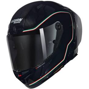 Este capacete de fibra de carbono de topo de linha reflete a filosofia Nolan Elegance in Engineering, unindo velocidade de pista e estilo.