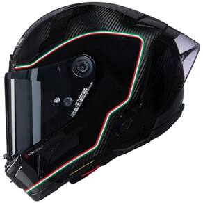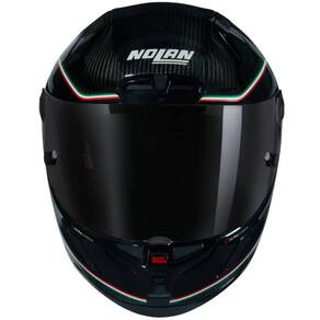 Seu design exclusivo Asso Di Picche Italia simboliza o espírito guerreiro, com a textura da fibra de carbono alternando com o preto e branco da pintura em brilho. Um contorno refinado destaca a viseira ultrawide. A inclusão da finíssima bandeira italiana é uma homenagem à produção 100% italiana da Nolan. O interior também foi renovado em cores e materiais.