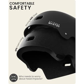 - Proteção máxima: OutdoorMaster capacete de skate Beetles confortável com ABS rígido e totalmente formado envolve espuma EPS de alta qualidade para absorver o choque e manter você andando com segurança neste capacete OutdoorMaster enquanto você anda em suas bicicletas, skates, patins e scooters. Construído para conforto e impacto