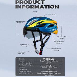 O Capacete para Ciclismo Gold Sports Victgual - Ultra Leve, possui um projeto arrojado e inovador, confeccionado em EPS material de alta qualidade, o que faz ele seguro e ultraleve, tem viseira luzes para o uso urbano e em estrada com 5 modos diferentes acompanha carregador usb e suporte para câmera. projetado com uma aerodinâmica inovadora o reduz muito a resistência do ar, possui 15 aberturas para manter sua cabeça ventilada diminuindo muito o suor. Ideal para ciclismo urbano, estradeiro. Possui Viseira que pode ser acoplada ou não e regulagem tipo engrenagem para ajustar melhor na cabeça, possui viseira magnética com proteção UV400 e lanterna acoplada na parte traseira e um design ARROJADO E MODERNO. Tamanho G: regulagem 57a 62 cm Peso: 180 gramas Composição: EPS, Poliester,Poli carbonato e PVC Marca: Victgual - Gold Sports Garantia: 30 dias contra defeito de fabricação