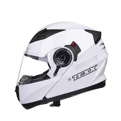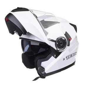 o capacete TEXX Gladiator possui as viseiras externa e solar interna com acabamento antirrisco.