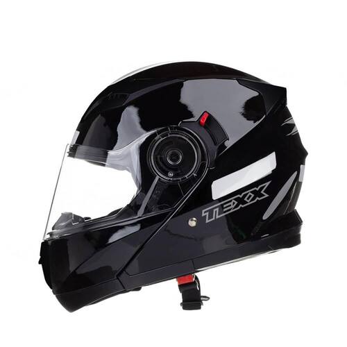o capacete TEXX Gladiator possui as viseiras externa e solar interna com acabamento antirrisco.