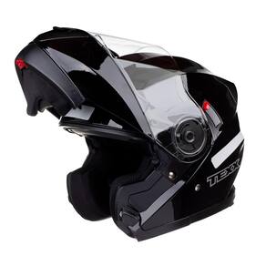 o capacete TEXX Gladiator possui as viseiras externa e solar interna com acabamento antirrisco.