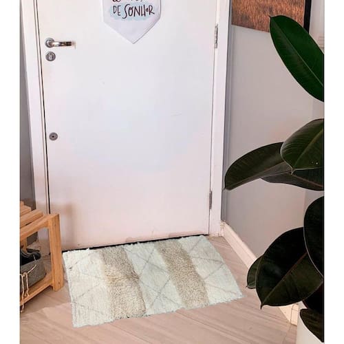 Além do ar de conforto que trazem para o ambiente, protegem o piso e delimitam espaços. Confeccionados à mão em Algodão, nossa linha de tapetes irá trazer diversas vantagens na sua rotina do dia a dia. Pode haver alguma pequena alteração no bordado, por ser feito a mão. Informações sobre o produto: Para que seu tapete se mantenha sempre lindo e confortável é necessário prestar atenção a alguns cuidados. Recomendamos a utilização de sabão líquido sem alvejante para lavagem das peças à máquina,sendo lavado na máquina não indicamos deixar de molho. Ao lavar, cuidado com o resíduo de sabão seco, pois ao sol causa manchas ao algodão. Portanto, enxague com bastante água, tirando todo o sabão. Para evitar manchas, é importante que a secagem seja feita à sombra. Em caso de manchas, remova o excesso com pano úmido ou papel toalha e lave imediatamente conforme instruções. Seguir as recomendações mantem a qualidade e a beleza das peças. Na hora da lavagem manual recomendamos água em abundância para retirar o sabão dos tapetes para que não haja risco da haver resíduos de sabão que na secagem podem causar dano à tonalidade do produto. Não recomendamos a lavagem de apenas uma parte do tapete em caso de contato com líquido ou sujeiras em locais pontuais, isso pode causar dano à tonalidade do produto. Por ser 100% artesanal ele pode sofrer variação na cor, tamanho e desenho, nada que afete a originalidade da peça. Os tapetes podem encolher após a primeira lavagem. Cor: Cru Tecido em Algodão Medida tapetes 0,50x0,80m Peso aproximado: 0,8 kg Por ser feito com resíduo industrial têxtil pode ocorrer variações na cor e tramas do tapete Tapete produzido com tramas de algodão com estilo e conforto. De construção retangular e acabamento arrematado, bordado a mão, o modelo é fácil de lavar e traz um toque de aconchego pra seu lar. Marca: Não Informado Ean: 2960008528020