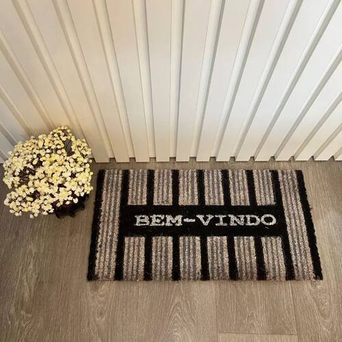 Capacho Fibra De Coco Estampado Antiderrapante 30x60cm - Cortex Bem Vindo Vertical -