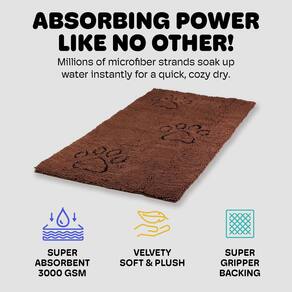 The Dirty Dog Doormat is a highly absorbent and versatile solution for keeping the floors of your home and car clean and dry. Featuring advanced microfiber technology with 50% more strands per inch, the dog floor mat measures 60 x 30 inches, soaks up to 7 times its weight in water or mud, and dries 5 times faster than ordinary mats. Its plush, velvety texture is gentle on paws, while the Super Gripper Backing ensures the pet door mat stays securely in place. Machine washable and durable, this mud and water absorbent door mat is suitable for use in cars, crates, under food bowls, after baths, or anywhere you need to trap dirt and water, offering unmatched convenience and performance.