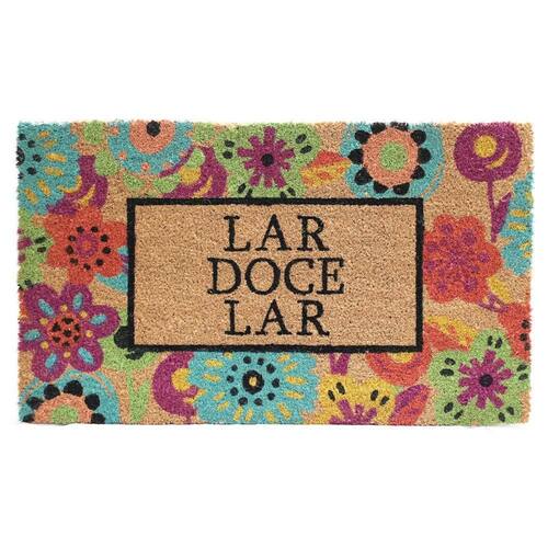 Capacho Tapete Fibra de Coco Lar Doce Lar Flores Tuut 45x75