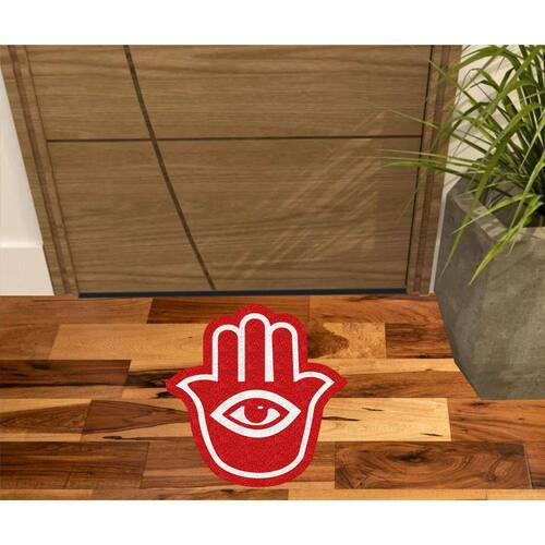 Tapete Capacho Vinil com fibras entrelaçadas e costado emborrachado com arte pinta em tinta vinílica especial.