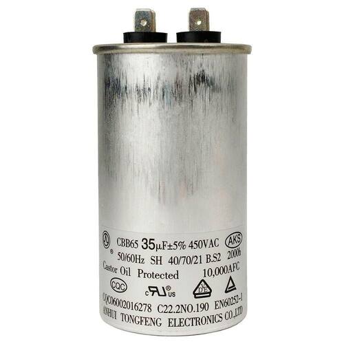 O capacitor de partida em um ar condicionado residencial/comercial serve para auxiliar o motor do compressor ou motor do ventilador a iniciar o movimento de forma eficiente, reduzindo a carga elétrica inicial exigida para superar a resistência da inércia. O Capacitor 35MFD 450VAC tem como objetivo armazenar cargas elétricas e, através desse armazenamento, fazer os efeitos sobre o circuito. A Capacitância é sua característica elétrica, que está relacionada com a voltagem (V). Quanto maior a tensão, menor a capacitância e vice-versa. Caso o aparelho elétrico apresente diminuição de potência, barulhos estranhos ou zumbido no motor recomenda-se verificar o capacitor. É indicado para sistemas de refrigeração e ar-condicionado. Possui alta resistência aos choques e vibrações.