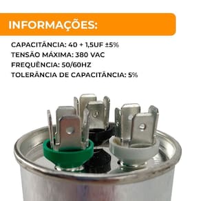 Capacitância: 40 + 1,5UF 5%