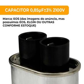 Capacitância: 0.85uf 2100v Tolerância De Capacitância: 3% Tensão Máxima: 2100v Frequência: 50/60hz Pino Grosso: 1,90 cm (Diâmetro Externo) X 1,70 cm (Diâmetro Interno)