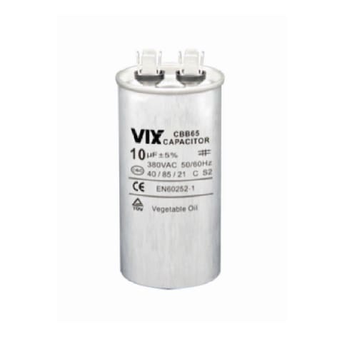 O Capacitor Permanente 10MF Vix – 380 Volts, tem vantagens de baixa dissipação, alta resistência de isolamento, bom caráter de autocura, corrente anti-choque, forte capacidade de sobre-portadora, desempenho elétrico estável e segurança confiável com dispositivo anti-explosão interno. É aplicado em ar condicionado, refrigeração e utilizado para a partida e funcionamento do motor.