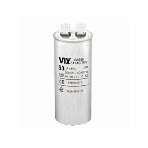 O Capacitor Permanente Vix 50MF - 250 Volts, tem vantagens de baixa dissipação, alta resistência de isolamento, bom caráter de autocura, corrente anti-choque, forte capacidade de sobre-portadora e desempenho elétrico estável e segurança confiável com dispositivo anti-explosão interno. É aplicado em ar condicionado, refrigeração, e utilizado para a partida e funcionamento do motor.