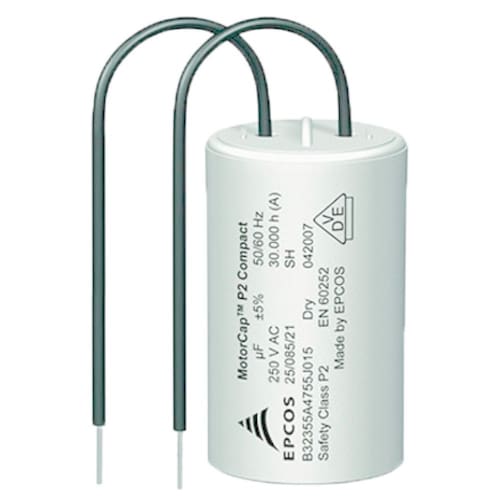 • Capacitores Auto-regenerativos em polipropileno metalizado para uso permanente em motores assíncronos; alta resistência aos choques e vibrações, caneca em plástico, terminais faston ou flexíveis (cabinhos).