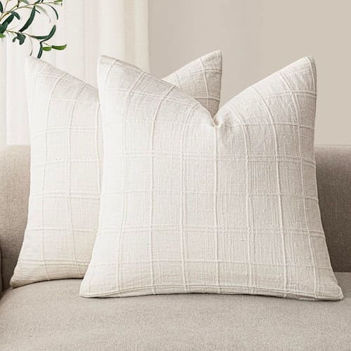 Capas de almofada Findtower Linen Check 60x60cm, branco creme