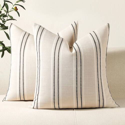 capas de travesseiro - ?Atemporal?Adicione elegância atemporal e casual à sua sala de estar ou espaço de estar com esta capa de almofada preta. As capas de almofada quadradas certamente adicionarão a quantidade certa de conforto e estilo ao seu sofá, cadeira ou banco. - ?Design de tecido de linho?Esta almofada dupla face é decorada com listras tecidas em um fundo de linho para complementar a estética de fazenda, chalé ou costeira. - ?Travesseiros internos e externos? Renove sua cama, sofás de jardim, cadeiras ou sofás com estas capas de travesseiro de linho ou arranjo de assentos de entrada para decorações simples e elegantes — também um presente perfeito. - ?Especificação?Conjunto de 2, 45,7 cm x 45,7 cm, 100% linho. APENAS CAPA. As almofadas não estão incluídas - Instruções de cuidados: Lavar à máquina a frio separadamente. Não usar alvejante. Secar em temperatura baixa.