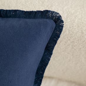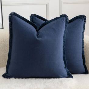 Mandioo Conjunto de 2 capas de almofada de algodão neutro com franjas decorativas boho fazenda, fronhas aconchegantes com borlas para sofá, quarto, sala de estar, decoração de casa, 45 x 45 cm, azul marinho