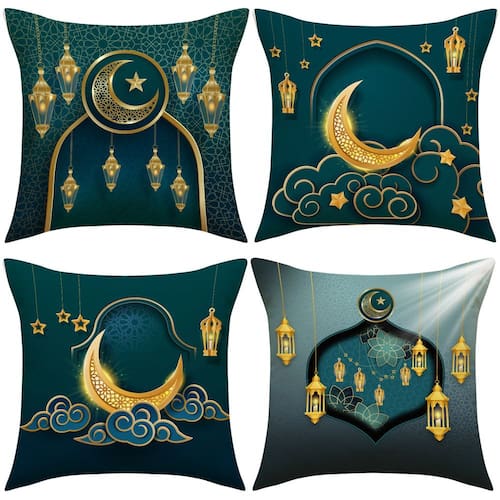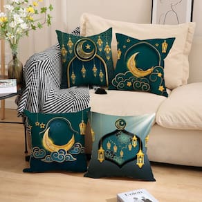 Material: poliéster Peso: 600 g Tamanho: 45 × 45 cm Design elegante do festival: apresenta um design deslumbrante de lua e lanterna, perfeito para celebrar festivais do Oriente Médio ou adicionar um toque de charme exótico à decoração da sua casa. Cores ricas: a combinação de detalhes em verde profundo, dourado e estrelas cria uma aparência marcante e festiva, ideal para ambientes domésticos modernos e tradicionais. Tecido de alta qualidade: feitas de poliéster durável, essas fronhas são macias ao toque, oferecendo conforto e aprimorando seu espaço com belas obras de arte. Decoração versátil: perfeitas para adicionar um toque de elegância à sua sala de estar, quarto ou área de estar, essas almofadas trazem calor e charme a qualquer ambiente. Fácil de manter: lavável à máquina para facilitar o cuidado, mantendo suas capas de travesseiro frescas e vibrantes para uso a longo prazo.