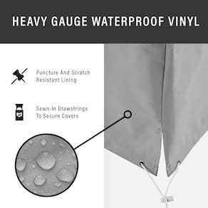 - AJUSTE SEGURO: Os cordões costurados mantêm as capas firmemente no lugar, mesmo em condições de vento. Este conjunto de cobertura para móveis de pátio é totalmente montado e projetado para ser universal, mas para obter melhores resultados, meça seus móveis para garantir um ajuste perfeito.