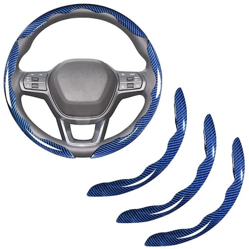 Capa de volante de fibra de carbono - Alta qualidade: material de fibra de carbono, macio e confortável, respirável, antiderrapante e resistente ao desgaste. Adotado um processo complexo de tecelagem, a capa de volante de fibra de carbono é decorada com um padrão de malha requintado. - Universal: Com excelente cobertura, esta capa de volante de 3 peças pode ser instalada em 10s, muito conveniente. Adequado para volantes de tamanho médio com diâmetros de 37 cm a 39 cm. - Melhor conforto: a espessura é de cerca de 0,3 cm, mais leve e mais fina do que outras. Respirável, antiderrapante, forma de contorno e design massageador para obter melhor sensação de toque. Resistente ao calor, ao frio e ao desgaste, universal para todas as estações. - Maior segurança: o forro antiderrapante no interior da capa do volante de fibra de carbono não arranha o volante autêntico. Pode caber confortavelmente no seu volante para proporcionar melhor aderência, o que lhe dá mais controle e sensação de segurança na estrada. - Serviço e garantia: Nossa marca, Aimato, oferece uma garantia de 1 ano para todas as capas de volante. Se você encontrar algum problema com o produto durante o uso, sinta-se à vontade para entrar em contato conosco e responderemos a você dentro de 24 horas.