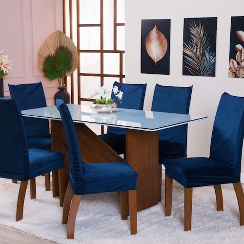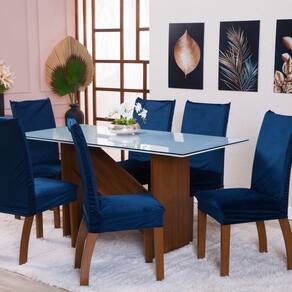 Capas Para Cadeira De Jantar 8 Unidades Suede Luxo - Marinho - Azul Marinho