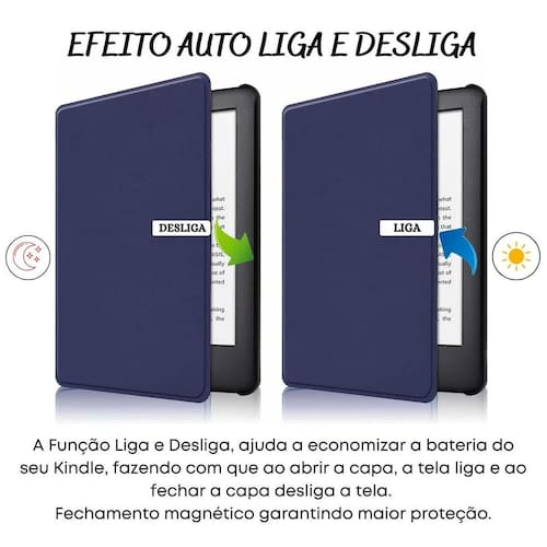 Capinha auto sleep para novo kindle 11 geração 6.8 c2v2l3 Cor: azul marinho Kindle novo kindle paperwhite 2022 11 geração c2v2l3 o objetivo da case é proteger o kindle de quedas e riscos que venha a comprometer o seu uso e até mesmo risca-ló, graças ao seu excelente material, conseguimos atingir essa meta. a case é feita de material sintético de alta qualidade, a qual fornece uma ótima proteção e uma longa durabilidade. A parte interna da case, é toda revestida em camurça, visando proteger é evitar que as sujeiras, risque a tela do kindle, quanto a parte de trás. agora com novas estampas lindas, podendo escolher a que mais combina com você e levar para todo lugar sem medo de quebrar e sem perder a beleza do produto. além a case conta com a abertura magnética, a qual garante uma maior proteção durante o uso, e também conta com o modo stand-by, o qual é ativado quando você abre a capa, e desativa quando a fecha, não havendo a necessidade de apertar o botão para ligar e desligar a tela do dispositivo. Portanto, o dispositivo irá economizar bateria. ------------------ Atenção ------------------ Essa capa é de uso exclusivo para o novo kindle paperwhite 2022 11 geração c2v2l3 Solicitamos que confira o modelo do seu kindle antes de efetuar a compra. Obs: o modelo do kindle se encontra atrás do dispositivo. ------------------ Perguntas frequentes ------------------ o modo stand-by precisa ser ativado R: não, ao colocar a capa corretamente no kindle, estará funcionando corretamente, assim que você abre a case a tela liga e ao fechar a tela desliga automaticamente. quais são os modelos compatíveis R: a case é compatível com o modelo: novo kindle paperwhite 2022 11 geração c2v2l3 ------------------ Especificações ------------------ Peso: 89g. Material externo: material sintético. Material interno: camurça. Material da parte interna que encaixa o kindle: acrílico Compatibilidade: novo kindle paperwhite 2022 11 geração c2v2l3 ------------------ Conteúdo ------------------ 1x case kindle. Anúncio referente a case Kindle não incluso ------------------ Apresentação: ------------------ Atuamos no mercado desde 2019 como loja de departamentos. Nosso principal compromisso é sempre estar inovando e oferecendo variados produtos com qualidade incomparável, para que você tenha uma experiência mágica e única ao obter os nossos produtos. Todos os nossos produtos passam por um amplo teste de qualidade antes de serem vendidos. Os produtos são testados e vistoriados antes de serem enviados aos clientes, para não ocorrer transtornos. Procuramos embalar os produtos da melhor forma possível, para que o mesmo não venha sofrer durante o transporte e corra o risco de chegar danificado ao consumidor. Nossa equipe é totalmente qualificada e estaremos a disposição para esclarecer as suas dúvidas, solucionar os seus problemas e fornecê-los o melhor atendimento possível. - qualidade garantida. - atendimento qualificado. - enviamos para todo o brasil. - compra garantida. - despachamos em até 1 dia útil após confirmação do pagamento garantimos a devolução por arrependimento em até 7 dias, após o recebimento e de 15 dias contra defeitos de fabricação. Marca: Não Informado