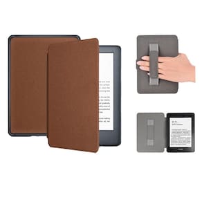 Capinha de couro sintético magnética com alça para Kindle Básico 2022 11ª Geração. Protege contra quedas e riscos. Interior em camurça para proteger a tela. Abertura magnética e modo stand-by automático para economia de bateria.Tipo