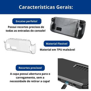 A capa com material maleável, protege seu steam deck e mantém o uso confortável. Possuindo ranhuras para diminuir as chances de queda enquanto joga