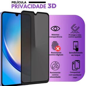 A Capinha para Galaxy A06 + Película de Privacidade 3D Armyshield oferece proteção avançada e segurança para seu dispositivo. A capa antishock protege contra impactos e quedas, enquanto a película 3D de privacidade impede que outras pessoas vejam a tela de lados diferentes, garantindo mais discrição e segurança. Benefícios: Proteção Completa: A capa oferece proteção contra quedas e arranhões, enquanto a película protege a tela e garante privacidade. Privacidade 3D: A película 3D de privacidade evita que terceiros vejam o conteúdo da sua tela de ângulos laterais. Facilidade de Instalação: Ambos os acessórios são fáceis de aplicar, sem bolhas e com acabamento perfeito. Sensibilidade ao Toque: A película mantém a sensibilidade da tela sem interferir na experiência de uso. Com o kit Capinha + Película de Privacidade 3D Armyshield, você garante proteção, discrição e estilo para o seu Galaxy A06.