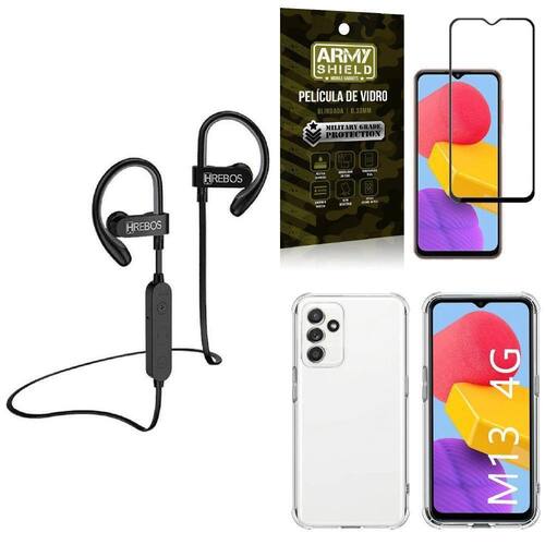 Kit Capinha Silicone Transparente anti shock com bordas reforçadas + Película de Vidro 3D Blindada Armyshield + Fone de Ouvido Sem Fio Bluetooth com alças sobre as orelhas para Corrida e Esportes. Esse kit é para você que precisa de um fone de ouvido que fique junto com você o tempo todo sem se soltar, com sua alça você pode correr mais tranquilamente que ele não escapará. Fone Intra auricular, com 3 pares de borrachas extras. Além do mais a Capinha e a Película vai deiixar seu celular 100% protegido, contra quedas, riscos ou arranhoes. 1- Capinha Antishock com bordas reforçadas em Silicone Transparente 1 - Película de Vidro 3D - Cobre a tela toda de fácil aplicação. Marca ArmyShield 1- Fone de Ouvudo bluetooth Hrebos HS-188 com alça para corridas . Marca: H'rebos Bateira com duração de uso de até 3 horas. Produto certificado pela Anatel. Ean: 7898945705851