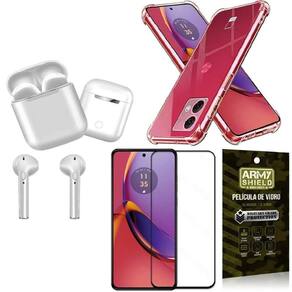 Kit Capinha AntiShock Transparente + Película de Vidro 3D + Fone de ouvido Bluetooth TWS A gold
