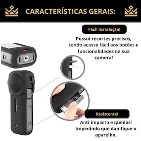 Proteção para qualquer ação: Com a capa de silicone para insta 360 x4, você pode manter sua câmera sempre protegida contra arranhões e impactos indesejados, seja no momento do uso ou quando for guardar ou até mesmo levá-la na bolsa.