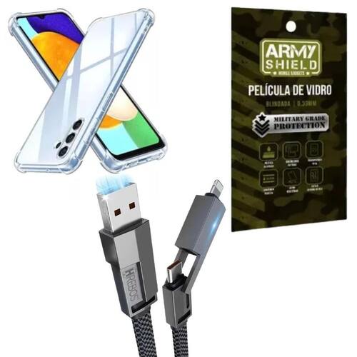 Cabo USB 4 em 1: Conecte e carregue seu Galaxy M15 com eficiência utilizando este versátil cabo USB 4 em 1. Equipado com conectores Micro USB, USB Tipo-C e dois adaptadores Lightning um para carregamento e outro para dados , ele oferece máxima compatibilidade e flexibilidade para diversos dispositivos. Ideal para quem precisa de uma solução prática e multifuncional.